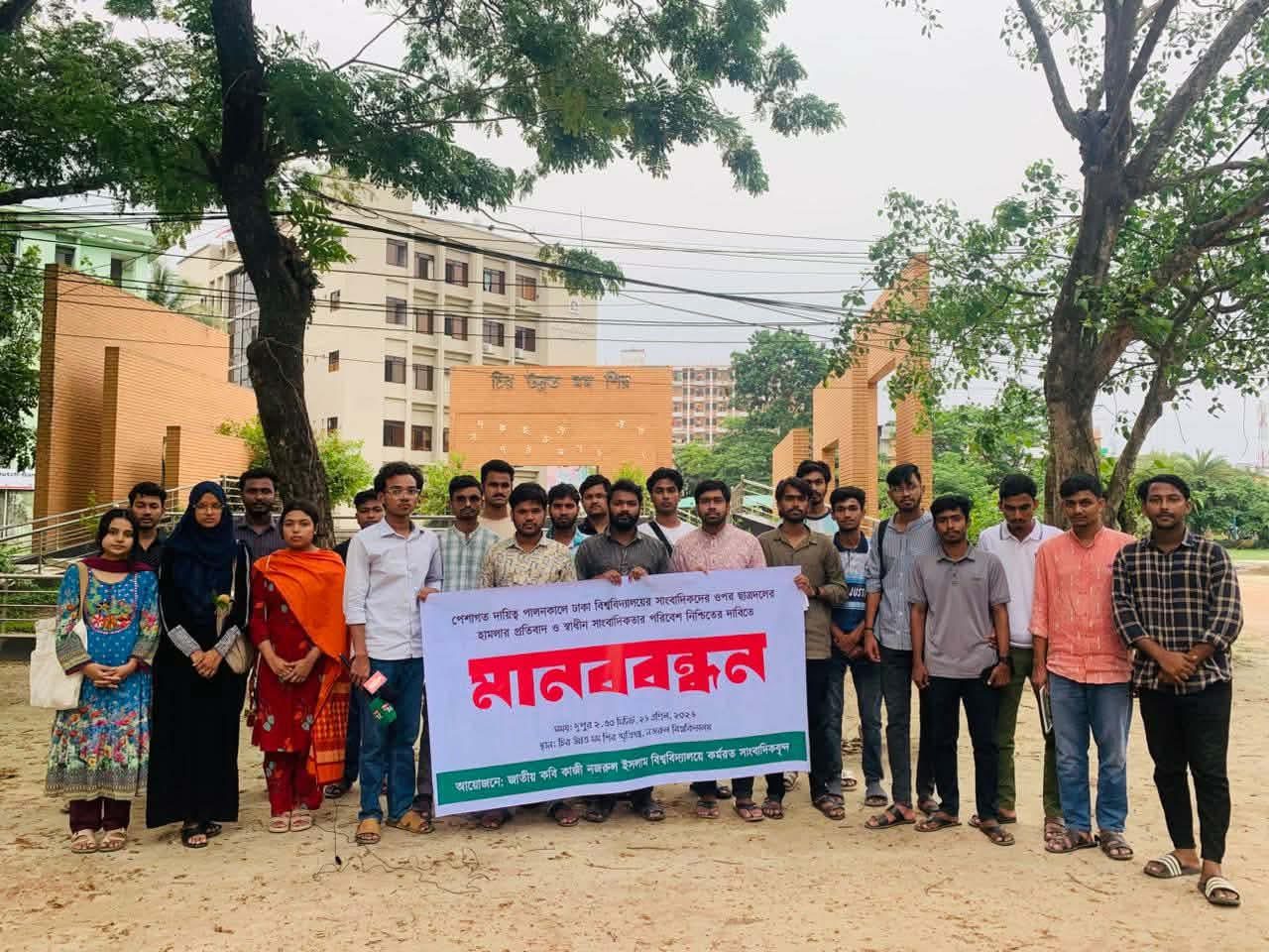 নজরুল বিশ্ববিদ্যালয়ে সাংবাদিকদের মানববন্ধন